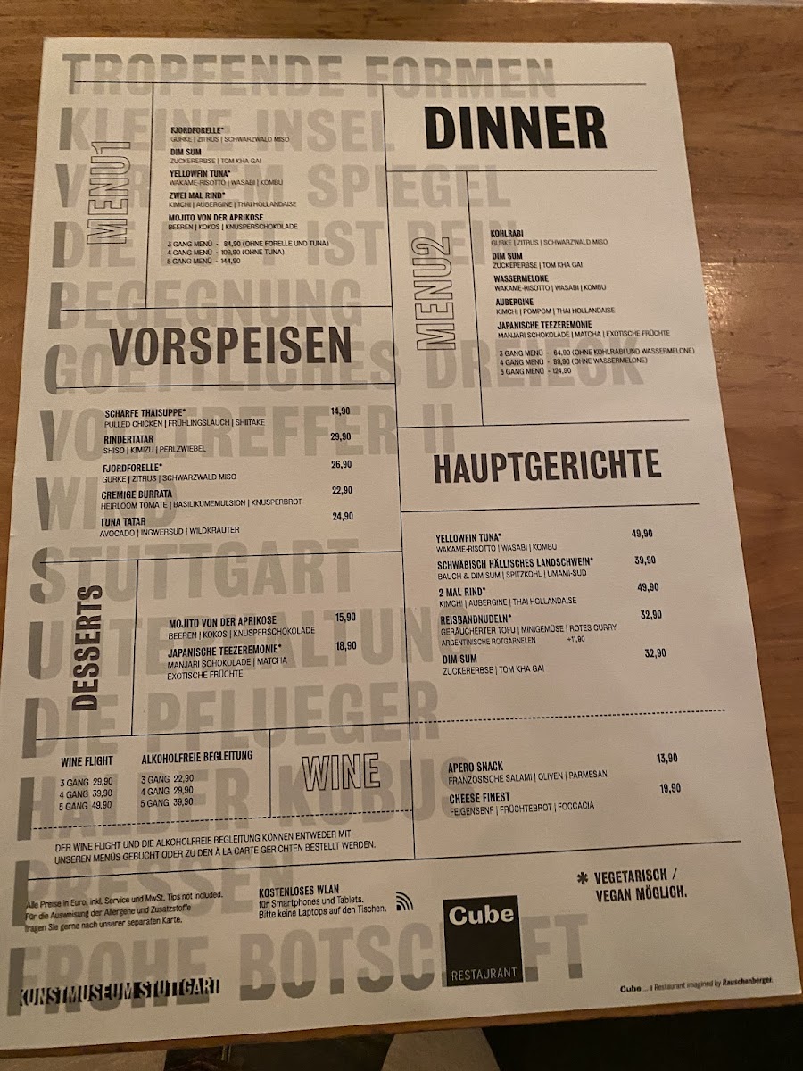 Located in the heart of Stuttgart at Kleiner Schloßplatz, CUBE Restaurant offers a culinary experience that captures both the palate and the stunning views of the surrounding cityscape. This modern eatery is celebrated for its carefully curated menu, showcasing a delightful range of dishes that prioritize fresh ingredients and bold flavors.